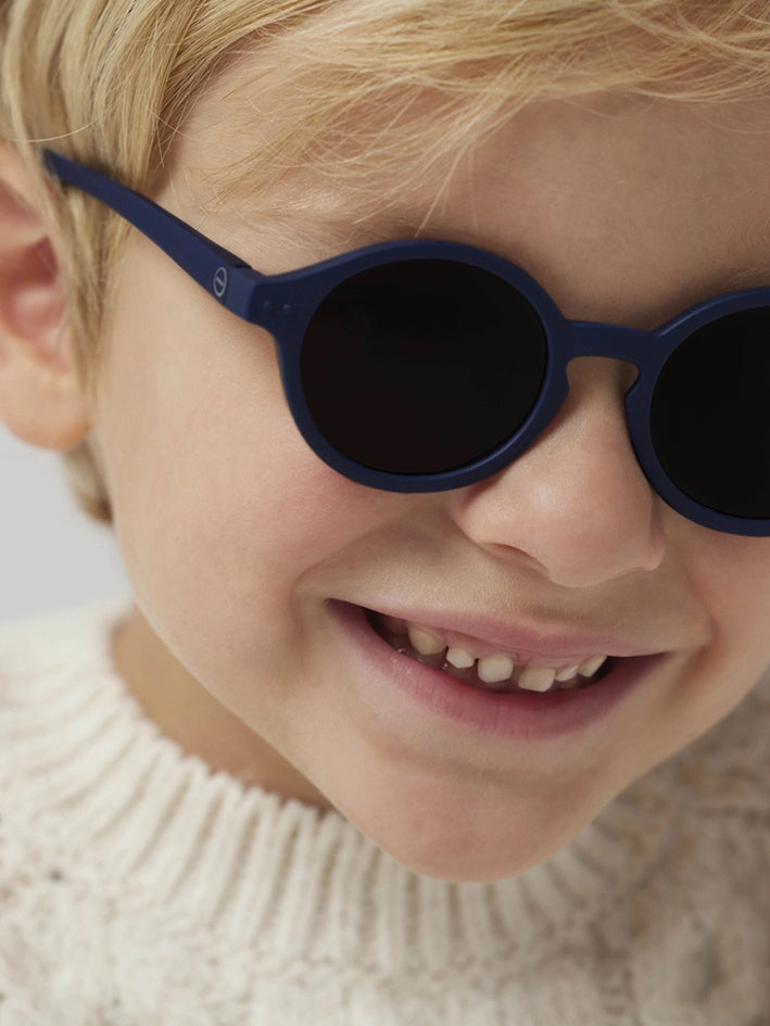 IZIPIZI looks after your little ones with its KIDS + range of Sunglasses in Denim Blue for children aged 3-5 years (head circumference 46-53 cm). The models protect children's eyes in every situation, from towns to countryside adventures and outdoor activities, summer and winter alike! Our 100% UV Category 3 (UV 400) polarized grey lenses offer maximum protection while respecting natural colours. They reduce light intensity and protect your infants from glare. The ultra-flexible, bisphenol-A free and hypo-allergenic frames are perfect for a children's everyday life. The straight arms mean they will also adapt to your children's growth. They come with a removable silicon strip for optimal hold. Ultra-flexible and ultra-resistant, IZIPIZI frames are perfect for your Kids’ everyday adventures and adapt to their growth thanks to their straight arms. Guaranteed bisphenol A-free and hypoallergenic.