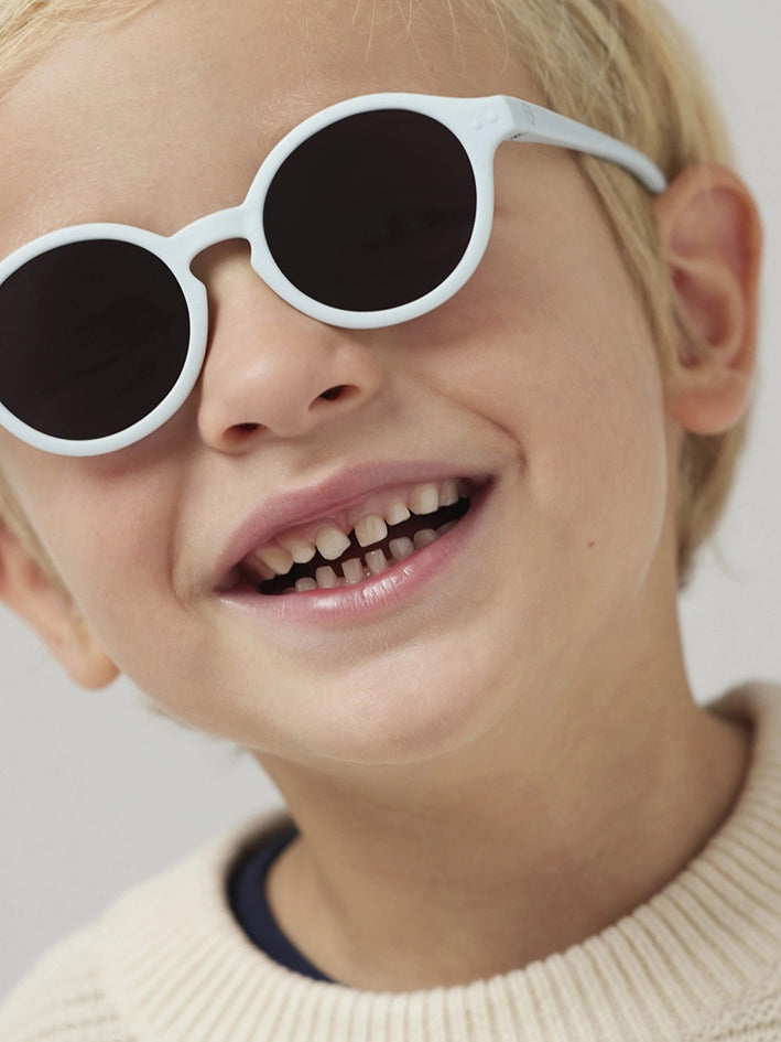 IZIPIZI looks after your little ones with its KIDS + range of Sunglasses in Sweet Blue for children aged 3-5 years (head circumference 46-53 cm). The models protect children's eyes in every situation, from towns to countryside adventures and outdoor activities, summer and winter alike! Our 100% UV Category 3 (UV 400) polarized grey lenses offer maximum protection while respecting natural colours. They reduce light intensity and protect your infants from glare. The ultra-flexible, bisphenol-A free and hypo-allergenic frames are perfect for a children's everyday life. The straight arms mean they will also adapt to your children's growth. They come with a removable silicon strip for optimal hold. Ultra-flexible and ultra-resistant, IZIPIZI frames are perfect for your Kids’ everyday adventures and adapt to their growth thanks to their straight arms. Guaranteed bisphenol A-free and hypoallergenic.