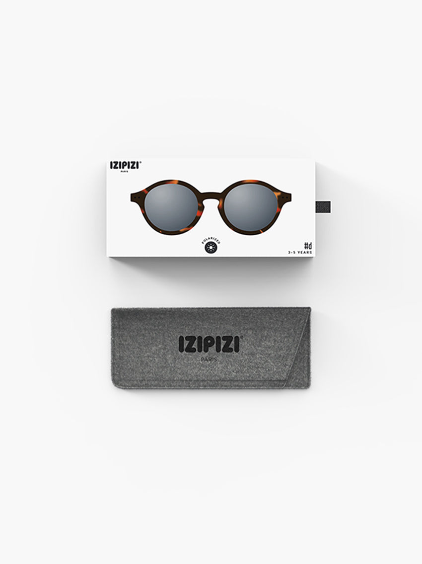 Izipizi Sunglasses in Tortoise for kids aged 3-5 years (head circumference 46-53 cm). #c shape: square, retro, playful - Polarized lenses - 100% UV protection (UV 400), Category 3 - Unisex, universal model - Storage bag and silicon cord included in the box.