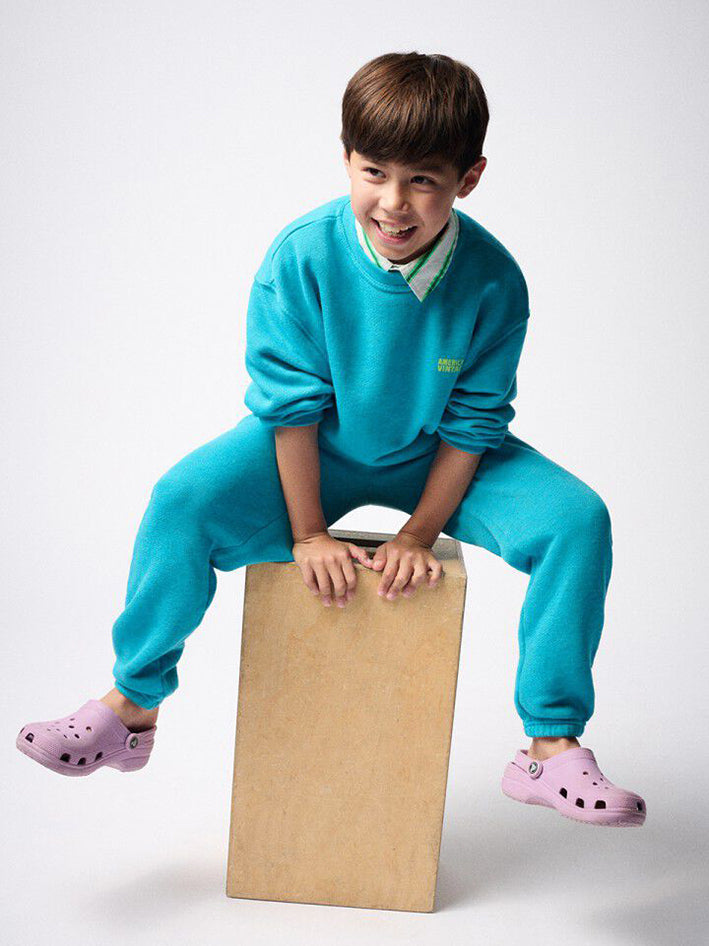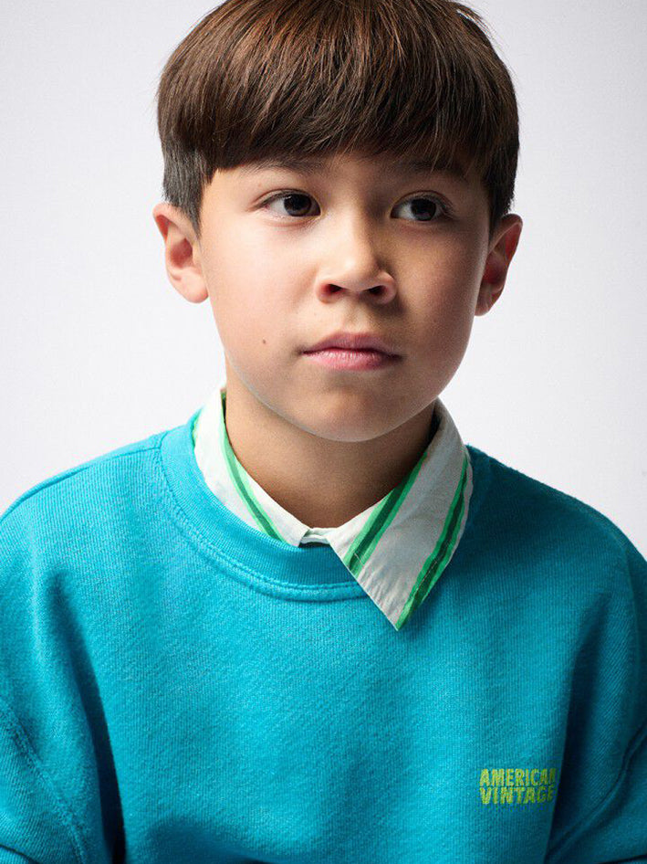 The American Vintage Kids Sweater in Tropical Vintage combines style and comfort in a trendy and functional design for children. Made from high-quality, soft materials, this sweater offers a warm and cozy fit that is perfect for cooler days. The design is classic and versatile, with a round neck, long sleeves, and a loose fit that allows for optimal freedom of movement. 98% Cotton, 2% Elastane
