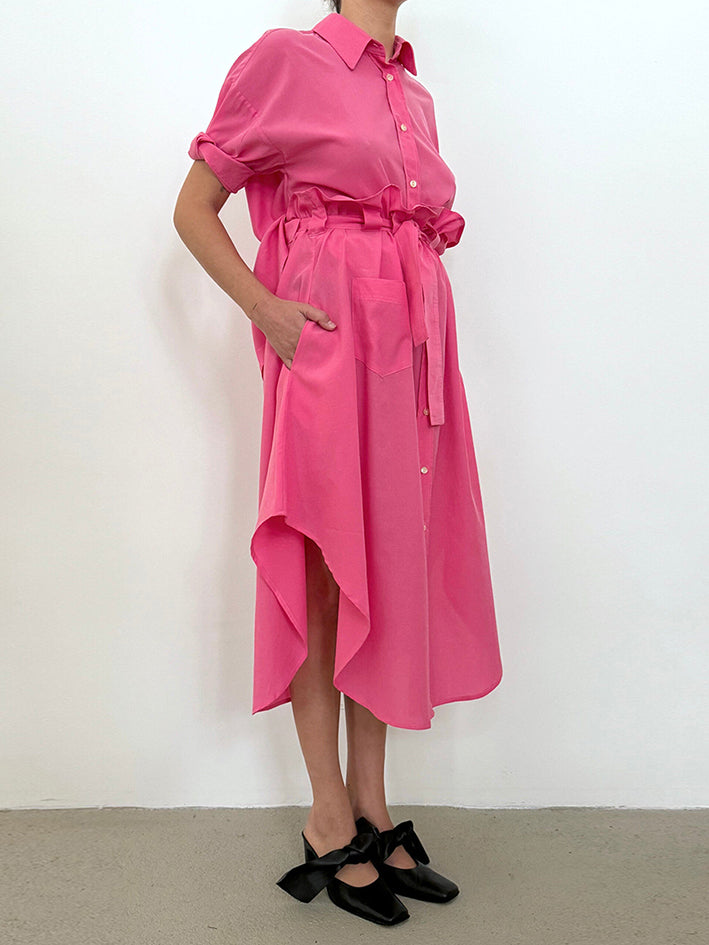 Features side seam pockets, shirt pocket at front, functional button rows on front and back and french seam finishing.