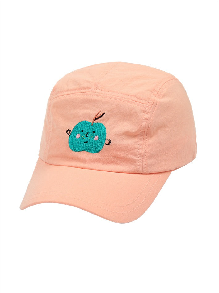 The Jelly Mallow Apple Camp Cap in Coral is made of 100% Cotton. 100% Cotton Outer. Lining 65% Polyester 35% Cotton. Size: 52-54cm.Made in Korea