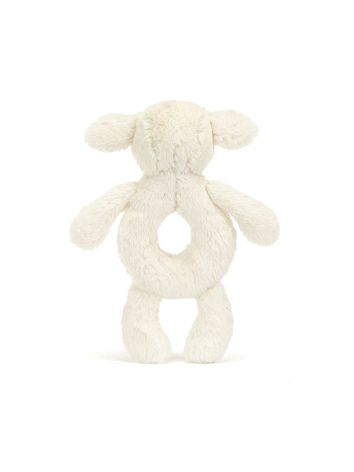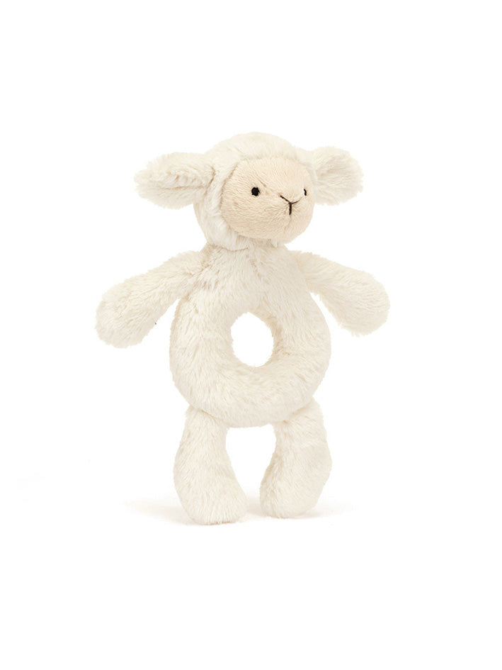 In two shakes of a lamb’s tail, Baby will be giggling away! The Bashful Lamb Ring Rattle from Jelllycat is soft in a vanilla cream fur made with recycled fibres. Easy to grab with four soft hooves and a ring-shaped tummy, the rattle gently jangling when shaken. With a sweet, embroidered face and cute waggle ears, it’s just the friend for long country trips.