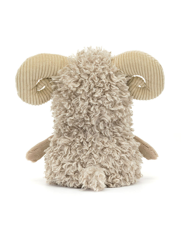 The Jellycat Ramsley Sheep is the littlest bighorn in the herd. With a coat of tousled, textured beige fur and soft beige limbs with cloven hooves, Ramsley has an expressive face and large, curly cord horns. The perfect companion for any hiker or wanderer. Dimensions: 29cm x 13cm x 13cm Sitting Height: 24cm Main Materials: Polyester, Cotton Inner Filling: Polyester Fibres, PE Beans Hard Eye