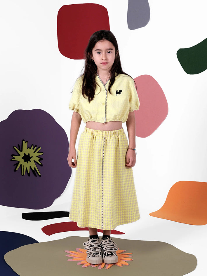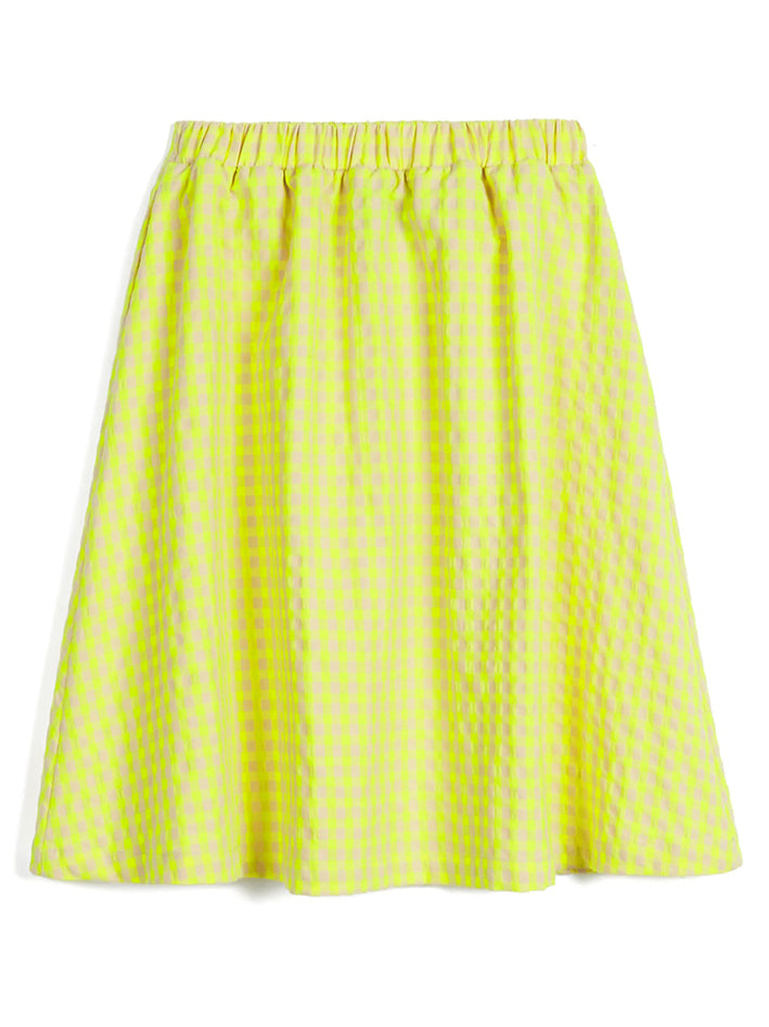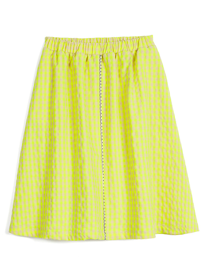 The June Skirt in Fluor Xtra by Wolf & Rita is a Long pencil skirt with elasticated waist and stitched details 60% CO 40% PES