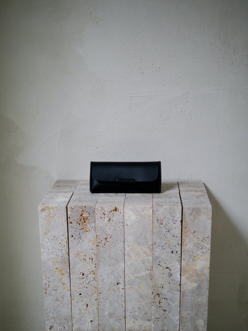 Seamless structure with a handwoven hidden closure. Sized for sunglasses and makeup objects.