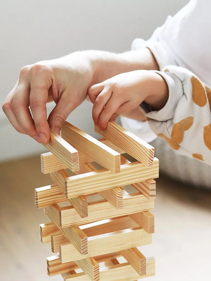 A KAPLA construction is by its nature short-lived, and breaking it apart is often as fun as building it! The same planks can be re-used to build other imaginative structures and worlds... An open-ended game for hours of creativity!