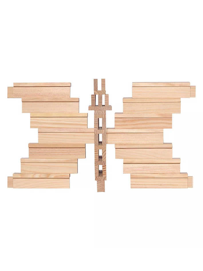 KAPLA planks are all the same size and allow builders to play and create with endless possibilities. The planks are simply assembled without the need for glue or clips, so you can build from the imaginationn.
