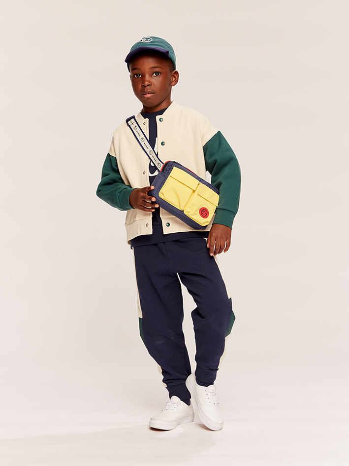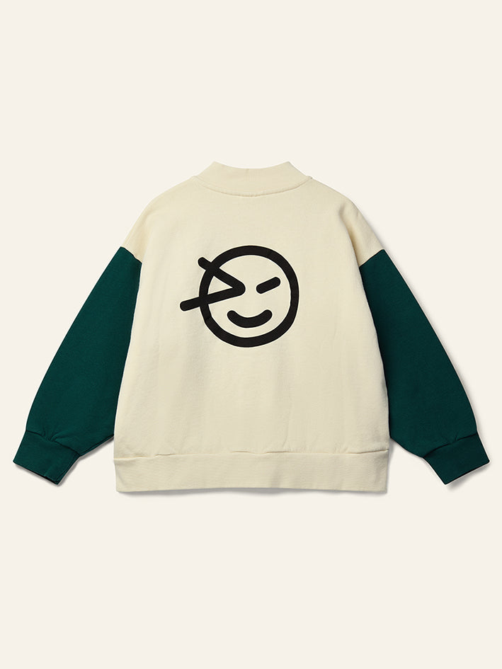 This certified, 100% organic cotton varsity Keel Bomber Jacket in Cream and Forest Green is the perfect top layer on chilly days, the cotton is soft and breathable. The bold Wynken logo on the back makes it a signature piece. Designed with classic set-in sleeves for that easy, everyday feel.