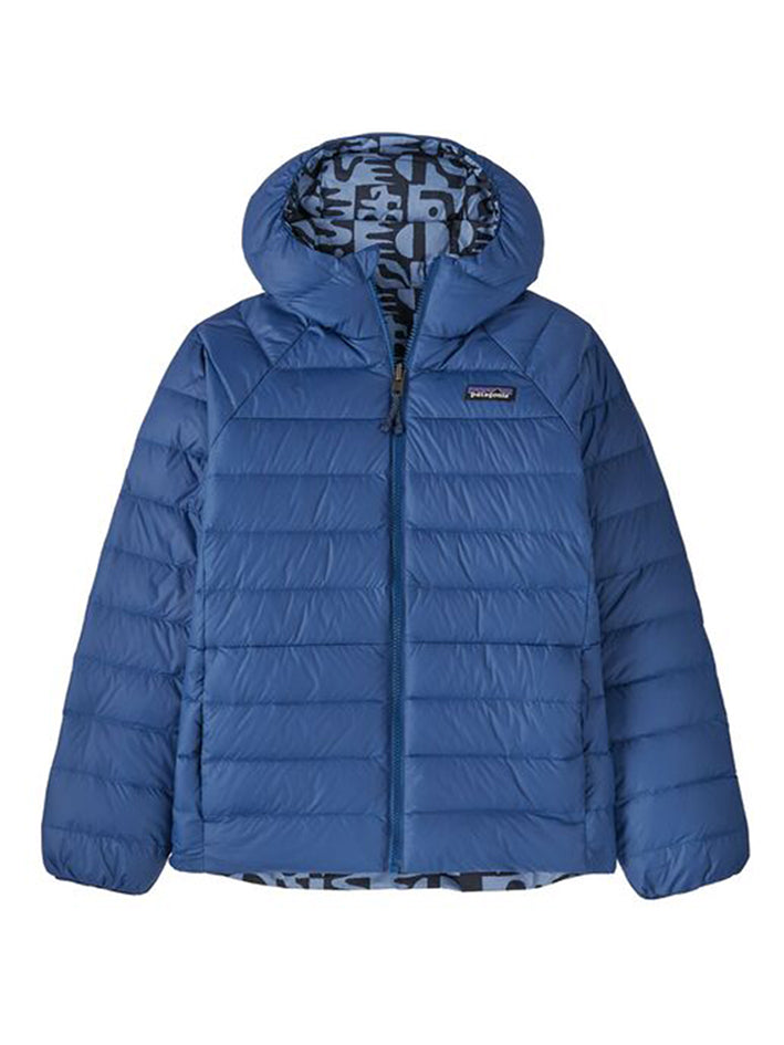 Patagonia Kids' Reversible Down Sweater™ Hoody in Sunken Blue– lightweight, warm, and versatile