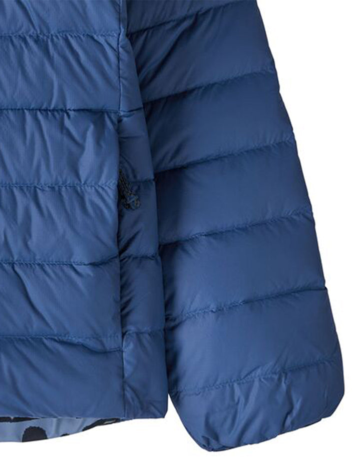 The hoody reverses to a contrasting solid or print in 100% recycled polyester taffeta, offering two looks in one. Insulated with 600-fill-power 100% Recycled Down (duck and goose down reclaimed from post-consumer products), it provides compressible warmth without bulk. Made in a Fair Trade Certified™ factory.