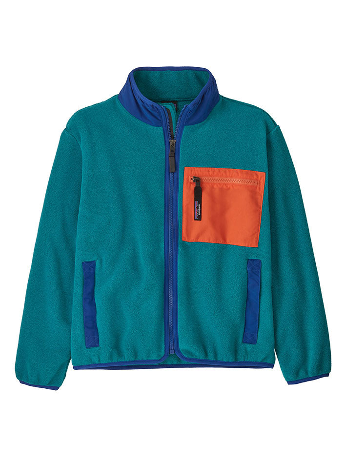 The Patagonia Kids Synchilla Jacket in Belay Blue is a cuddly soft fleece jacket for kids, inside and out. Synchilla® Fleece is the name of the fabric from which this children's jacket is made and is one of the softest of its kind. At the same time, the jacket is reinforced on the collar, sleeves and hem so that it does not lose its shape there. Its length reaches to the hips and the sleeves of this jacket are cut in such a way that your child has full freedom of movement when hiking, playing and romping around. fast drying moisture transporting breathable resistant Sustainable features contains recycled materials fair trade main material 100% polyester