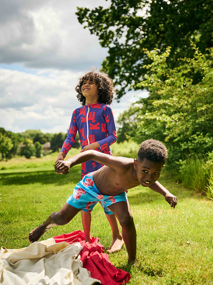 These Wynken Kite Swim Shorts in Turquoise are designed for all-day comfort and fun in the sun. Featuring a relaxed fit and an elastic waistband with a hidden drawcord, they provide a secure yet adjustable fit for active little ones. The built-in mesh lining adds extra support and comfort, making them perfect for swimming and beach play. Crafted from lightweight, quick-drying fabric, these swim shorts are a practical and stylish choice for summer adventures. A must-have for endless fun by the water!