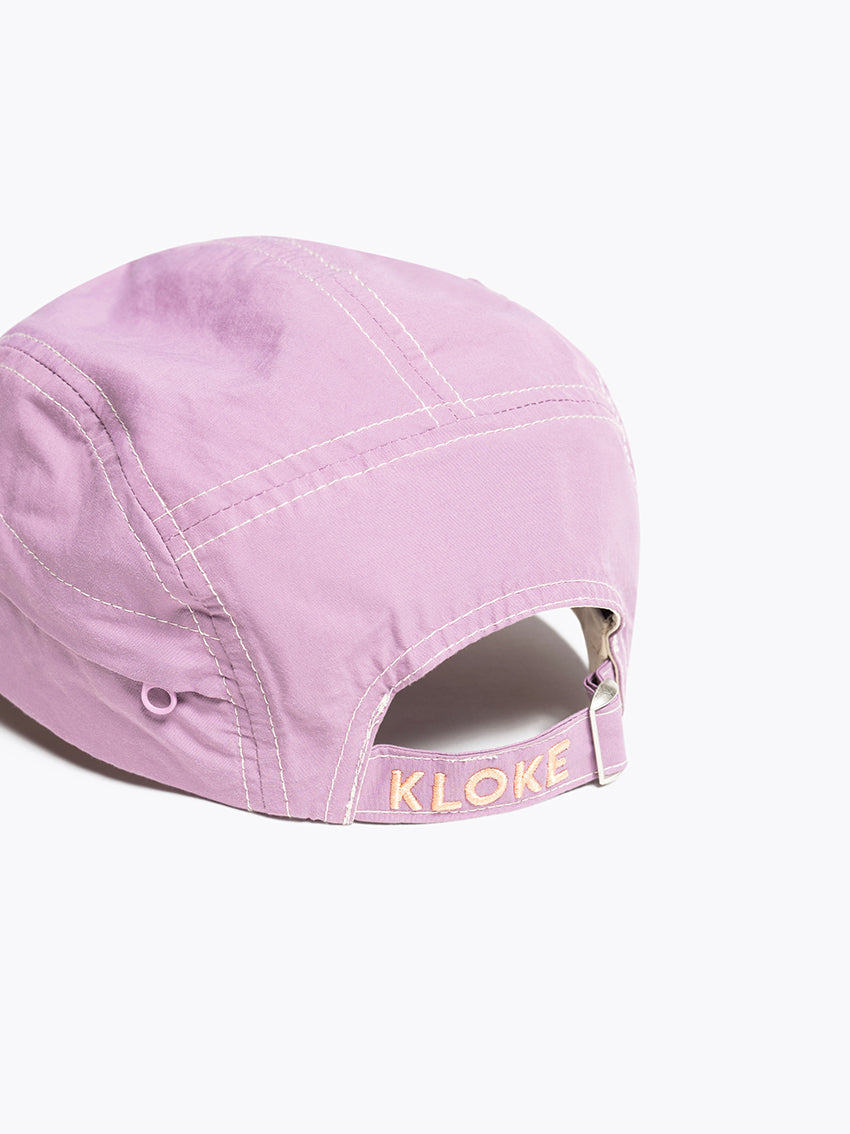 A versatile unisex 5-panel Cap crafted in Faded Purple by Kloke from quick-dry technical nylon. Featuring a hidden zip pocket, ideal for keeping small essentials when out and about. Adjustable back strap with subtle embroidered Kloke branding ensures a custom fit. 100% Nylon