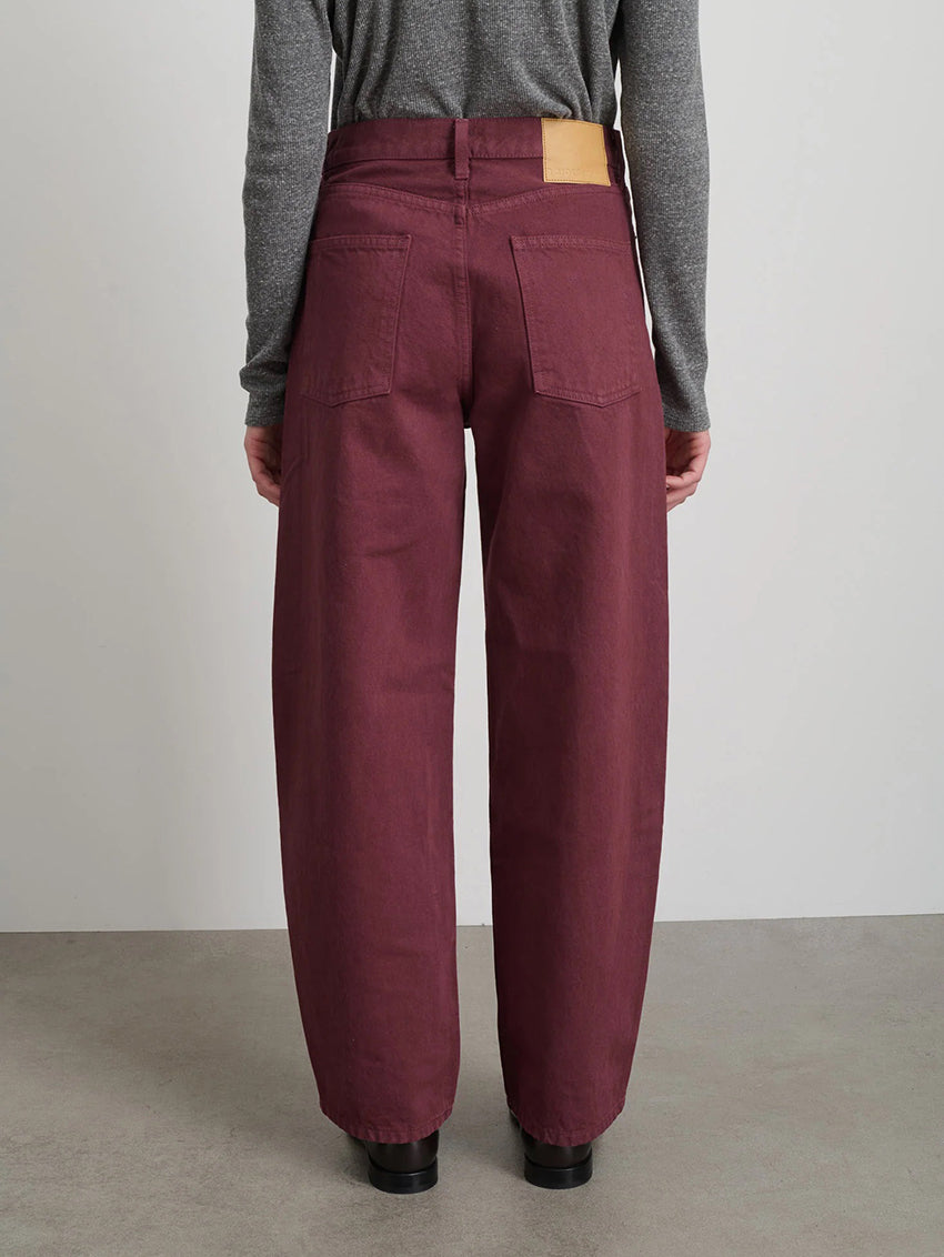 An arched leg shape defines this cool mid rise modern five-pocket silhouette.
