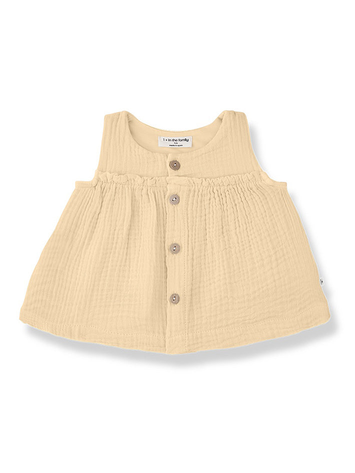 The 1 + In The Family Lina Blouse in Peach is made from 100% cotton. Made in Spain.