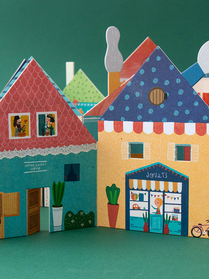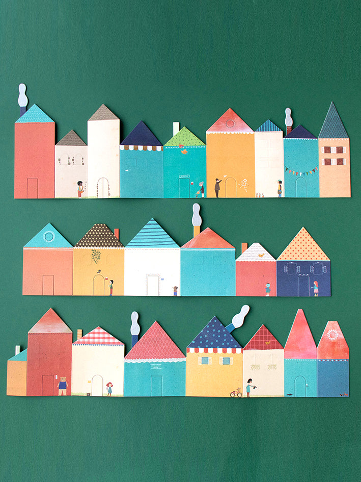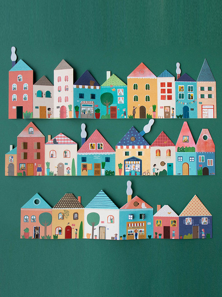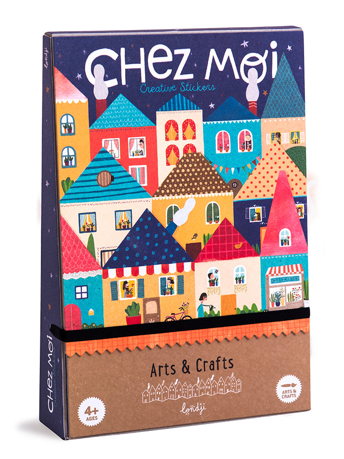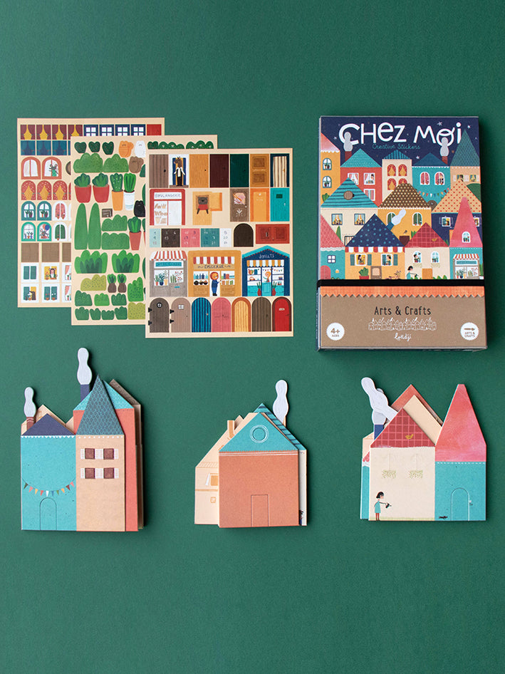 A craft set that includes 185 stickers and 3 folding cards of houses.