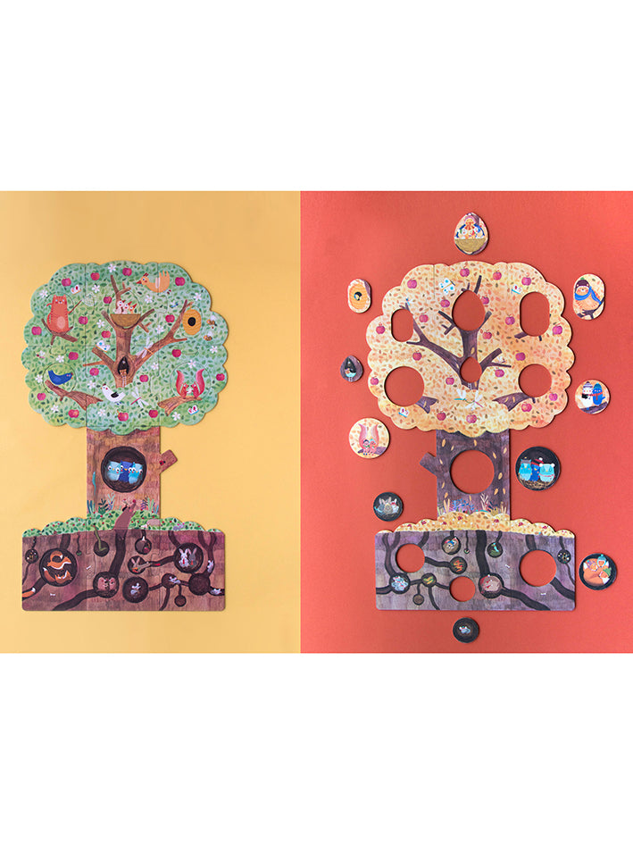 Mon Petit Pommier Puzzle by Londji is a reversible and connecting puzzle with a tree as the focus. See how nature changes from summer to winter!