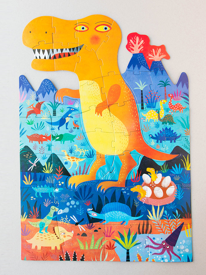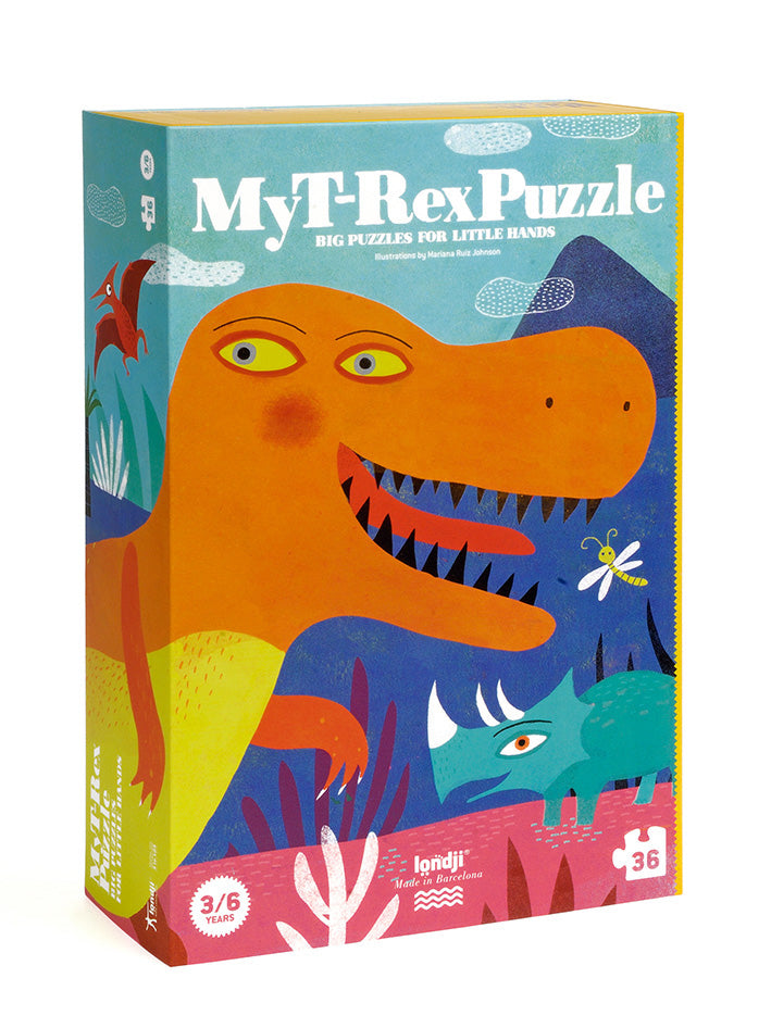 A 36-piece shape puzzle starring a T-Rex with which we will explore the time of the dinosaurs. For girls and boys from 3 to 6 years old.