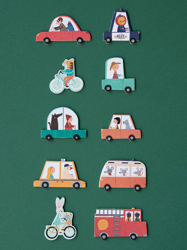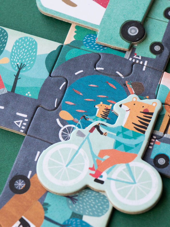 A pocket- sized 24 piece puzzle of cars and bicycles. A game of observation that you can take everywhere!!