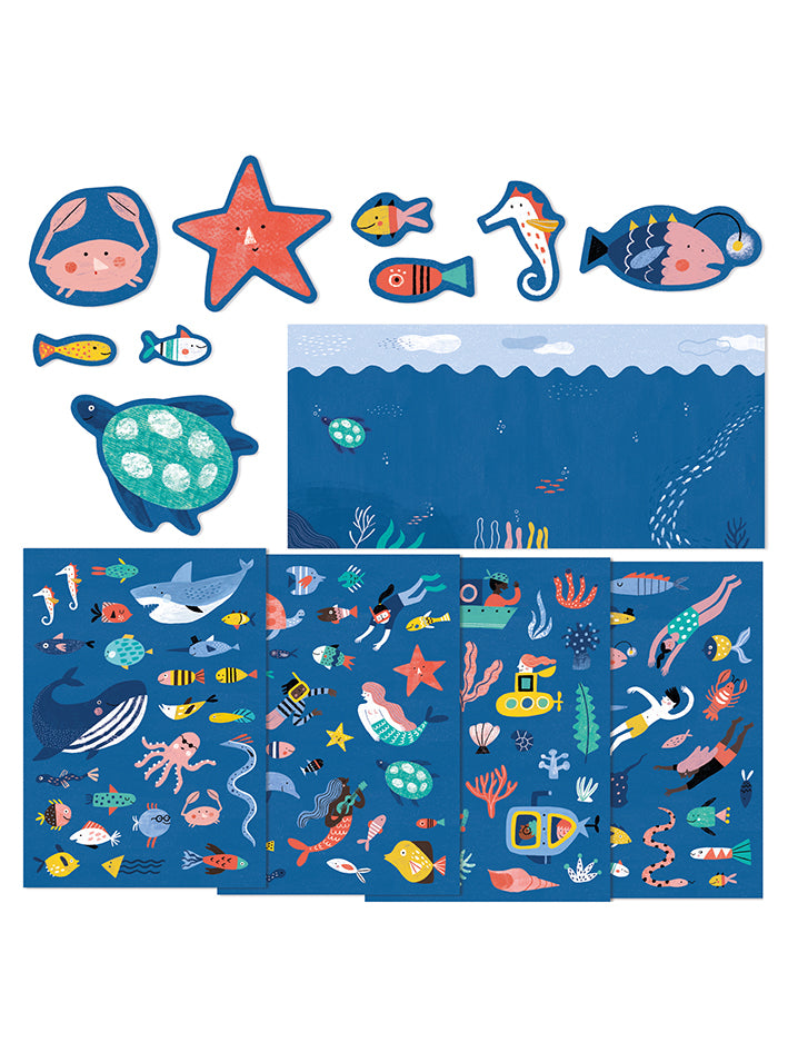 Londji Stickers Sea Activities includes 150 marine stickers that can be reattached as many times as you like. They include algae, fish, mermaids and divers so you can build the seabed of your dreams on your favourite scenery!