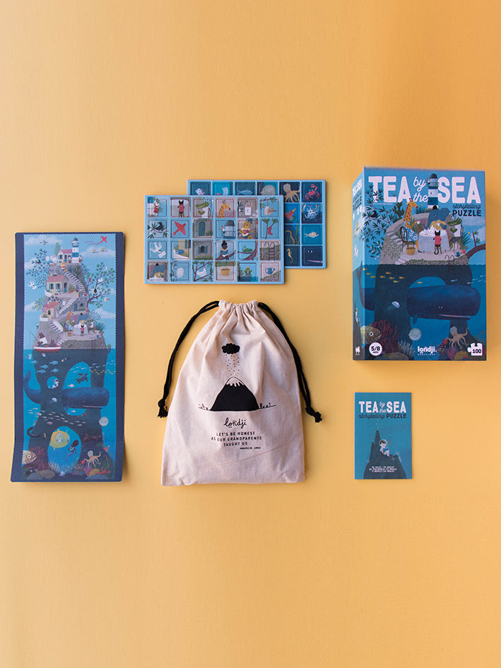 Dive into an imaginary dream-like world, full of life. Once the Londji Tea By The Sea Puzzle has been solved, we offer you different games with the 48 cards that come with it. This puzzle is a great tool to invent stories, enhance creativity, stimulate the imagination and exercise the ability to observe.