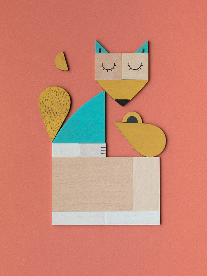 Londji The Fox & The Mouse Wooden Toys. 16 coloured wooden pieces will open an imaginary world inhabited by cats, whales, owls and foxes...