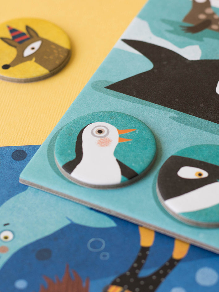 The cardboard boards with illustrations of animal habitats (the desert, the seabed, the jungle, the savannah, the forest and the Antarctic) are distributed among the players. In turn, starting with the youngest members of the family, we flip over the animal chips. If any of the players has the animal drawn on their cardboard, the put the chip on top of their card. The first to complete their card will win the game! A very fun way to get to know the different habitats where animals live.