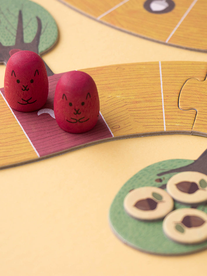 In this strategy game, the family of squirrels that manages to bring the most acorns to their burrow will be the winner. A sustainable and proximity game.