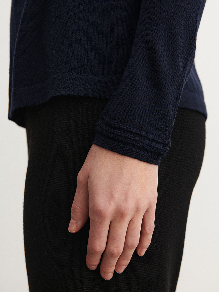 The blouse is made from extra fine merino wool. The merino wool is BLUESIGN® and RWS certified, free from harmful chemicals and sourced from non-mulesed sheep.