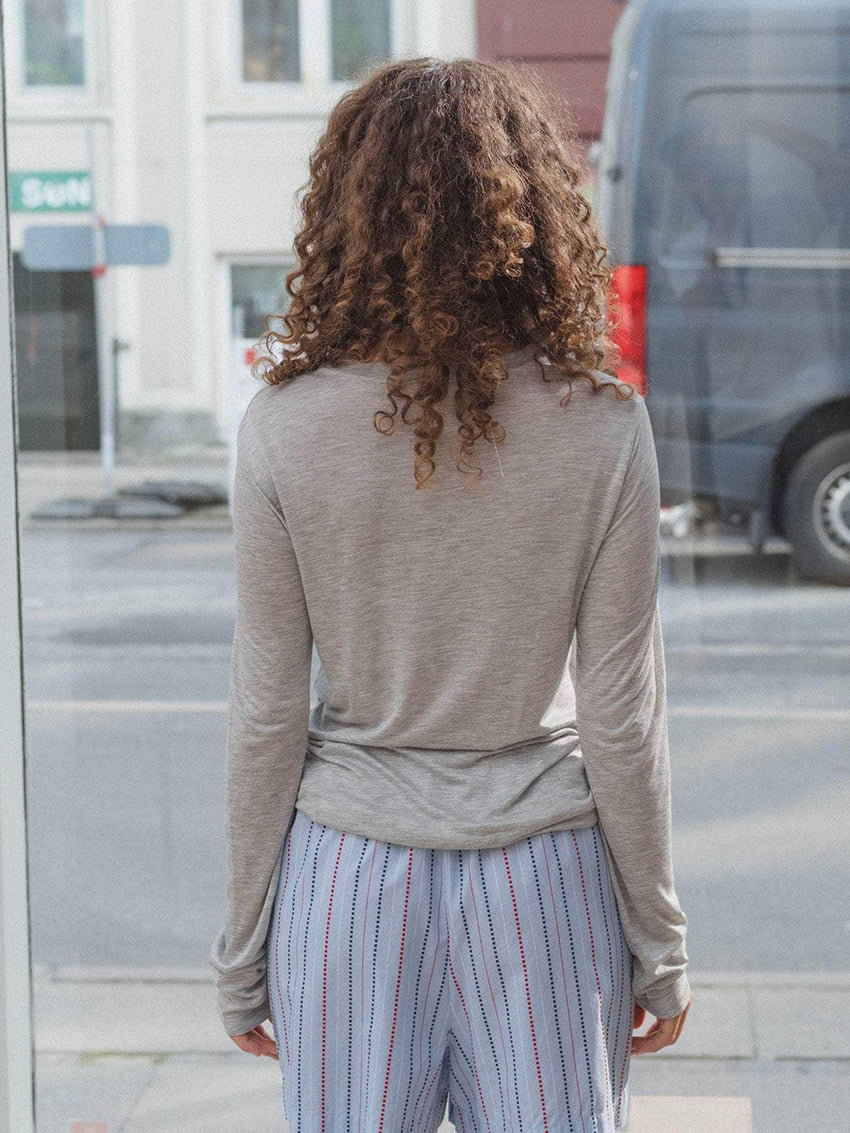 Bamboo viscose Long Sleeve Tee in Grey Melange by Baserange.