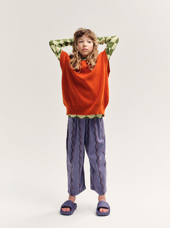 The Main Story Lounge Pants in the Heron Squiggle stripe print have a loose, wide fit with a cropped length and an elasticated drawstring waist for ultimate comfort. Finished with a logo-printed back pocket, they are a versatile addition to their relaxed wardrobe. Side pockets Embroidered logo at hip 100% organic cotton Responsibly made in Portugal