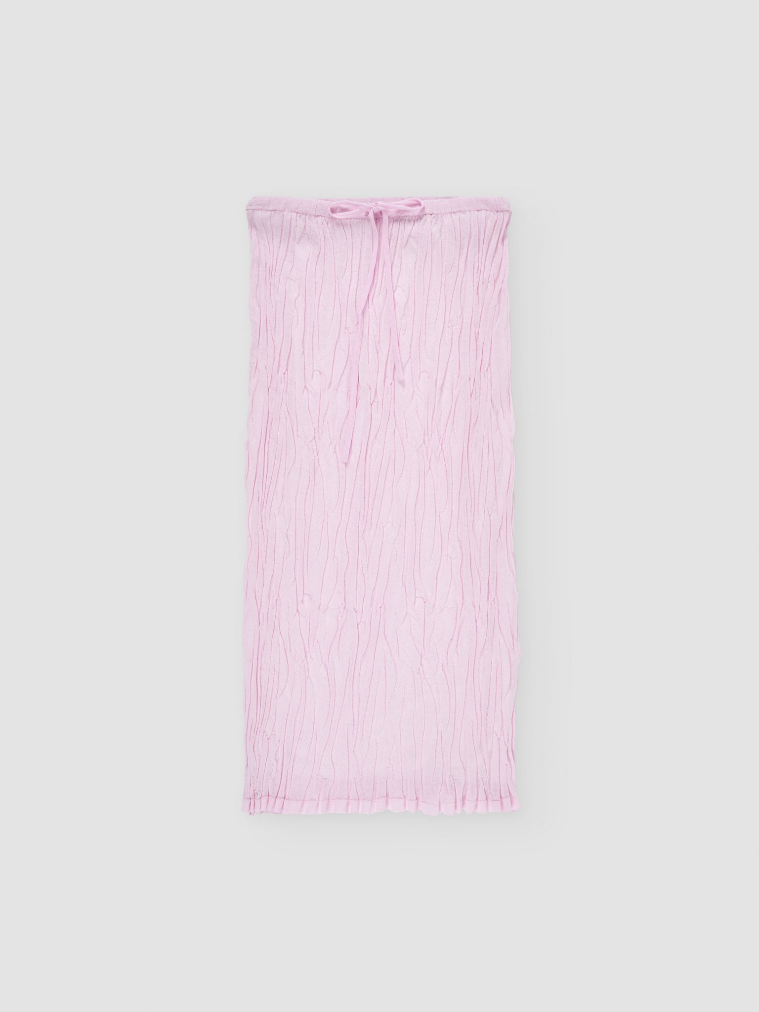 Lightweight midi skirt crafted from organic cotton, knitted in a textured stitch for a subtle, irregular pleated effect throughout. Features an elasticated waistband with adjustable ties and a detachable lining for versatile styling.