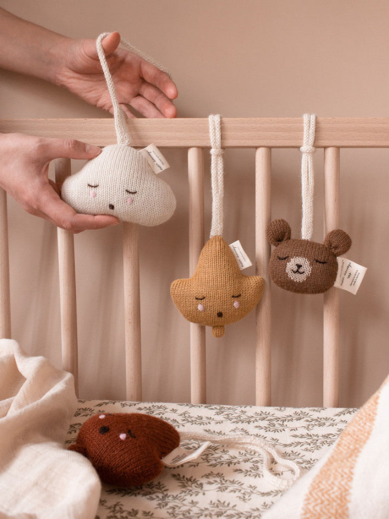 With its drawstring easy to tie, it can be hung on the baby gym, above the bed, on the stroller or on the car seat. Handknitted in a fair-trade workshop in Bolivia, this toy's making supports an intelligent production, respectful of Earth and humans’ rights. This hanging rattle is made in pure baby alpaca wool, which is antibacterial and perfectly adapted for sensitive skins.