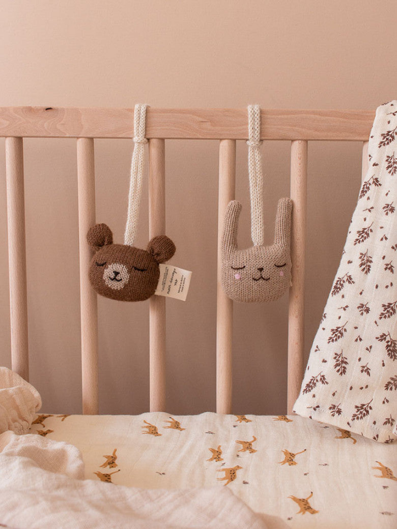 With its drawstring easy to tie, it can be hung on the baby gym, above the bed, on the stroller or on the car seat. Eco-friendly fact: the wool colors used for this toy are natural shades of alpaca. No dye was used! Handknitted in a fair-trade workshop in Bolivia, this toy's making supports an intelligent production, respectful of Earth and humans’ rights. This hanging rattle is made in pure baby alpaca wool, which is antibacterial and perfectly adapted for sensitive skins.