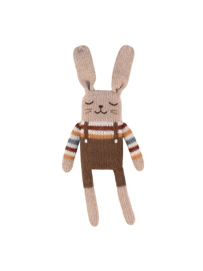 With its cute Overalls and its cute beautiful Rainbow Sweater, the Main Sauvage knitted Bunny will melt the whole family. Extra soft and perfect for baby’s tiny hands, it makes a nice gift for a birth or a birthday. Handknitted in a fair-trade workshop in Bolivia, this toy's making supports an intelligent production, respectful of Earth and humans’ rights. Like all our knitted toys, this little bunny is made in pure baby alpaca wool, which is antibacterial and perfectly adapted for sensitive skins. Size: approximately 23 cm (9″) Hand knitted in 100% Baby Alpaca wool Hypoallergenic and antibacterial material Complies with European safety standards Suitable from birth