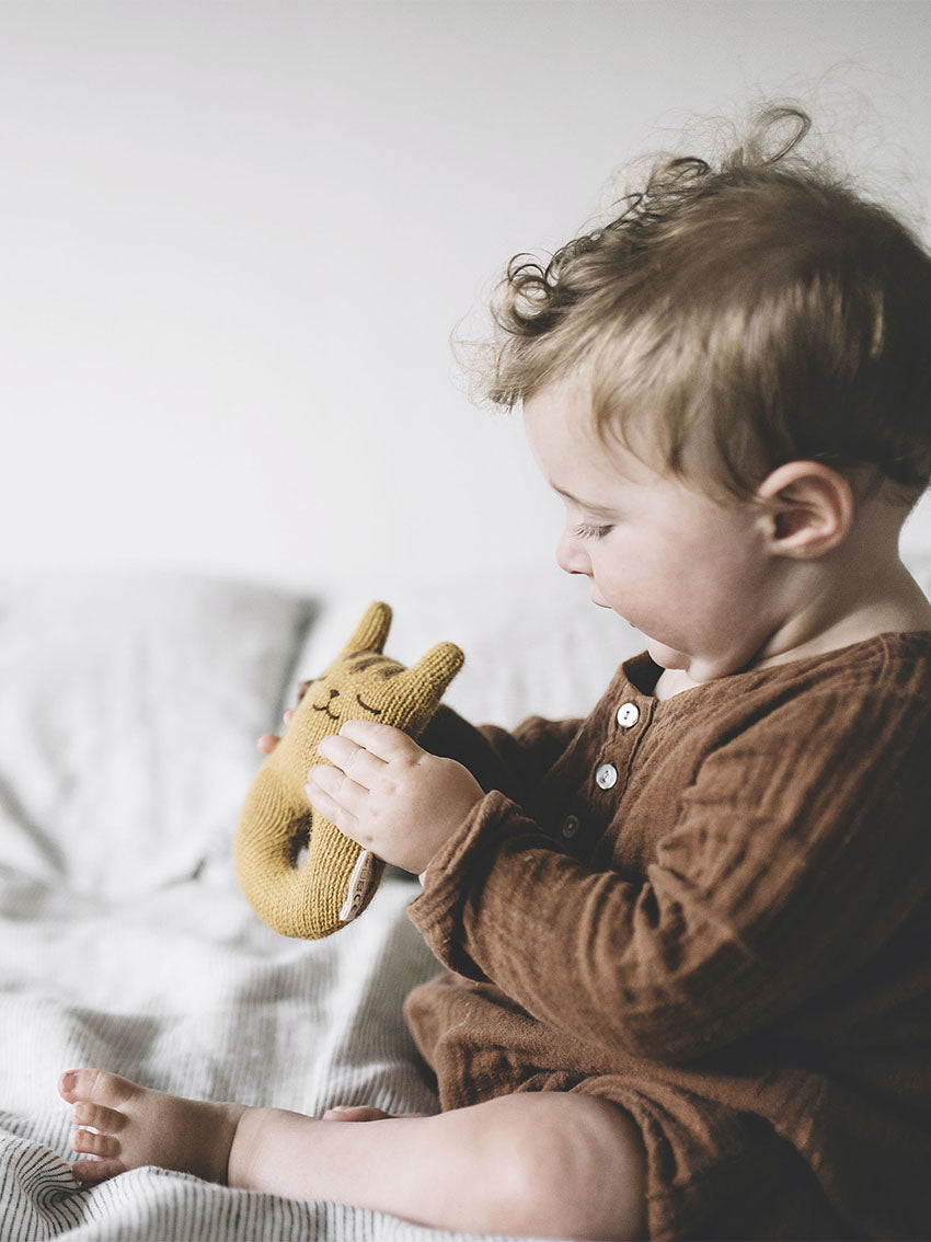Lovely Tiger Rattle by Main Sauvage makes a beautiful gift for a baby. The little ones enjoy its incredible softness and the sweet sound of its bell.