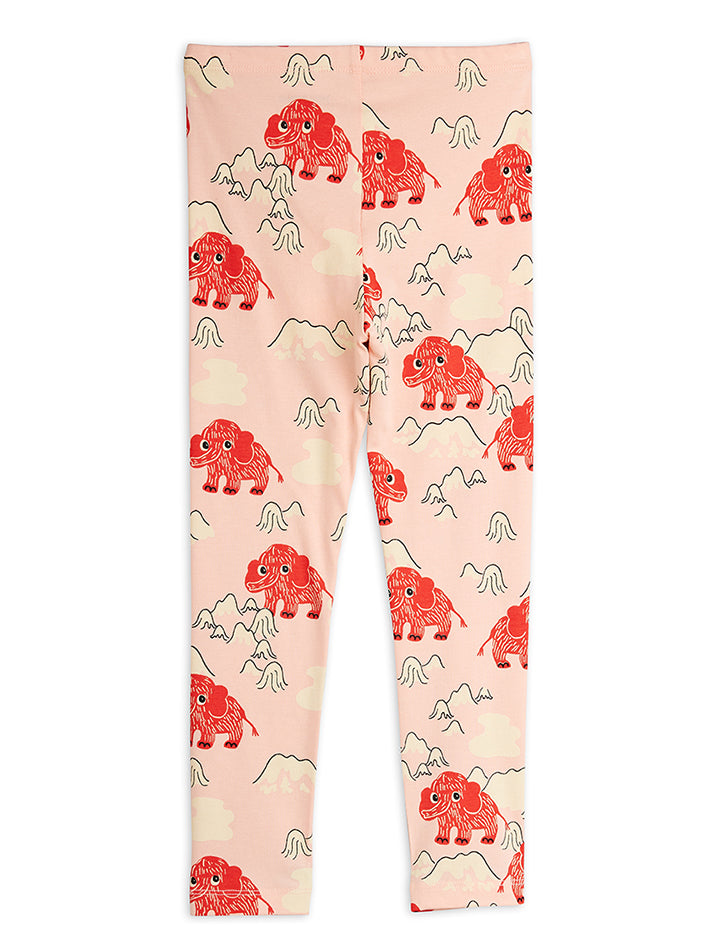 Mini Rodini only uses organic cotton certified by GOTS, or other certifications on products where GOTS isn’t possible. The producers follow international certification standards ensuring that the cotton content is grown without pesticides and with less water consumption than conventional cotton farming. Leggings Pink in an all over Mammoth pattern made from GOTS-certified organic cotton with a hint of stretch. Designed in a slim fit and an elastic waist for extra comfort. Features • Slim fit • Elastic waist Material • 95% Organic Cotton 5% Elastane • GOTS certified