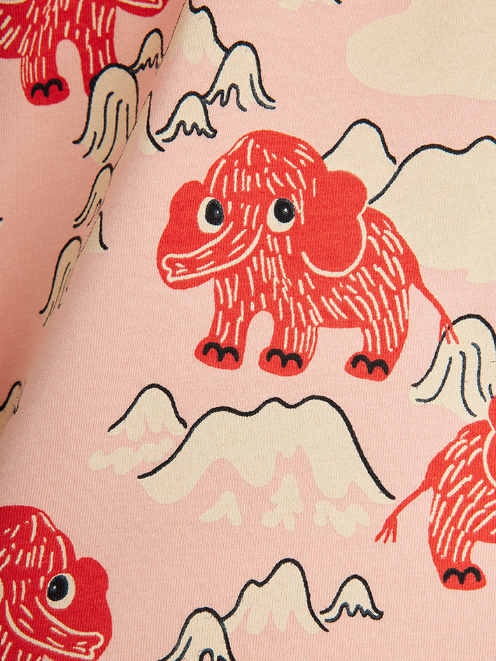 Mini Rodini only uses organic cotton certified by GOTS, or other certifications on products where GOTS isn’t possible. The producers follow international certification standards ensuring that the cotton content is grown without pesticides and with less water consumption than conventional cotton farming. Long Sleeve T-Shirt Pink in an all over Mammoth print made from GOTS-certified organic cotton with a hint of stretch. Designed in a tight fit with bindings at neck. Features • Tight fit • Binding at neck Material • 95% Organic Cotton 5% Elastane • GOTS certified