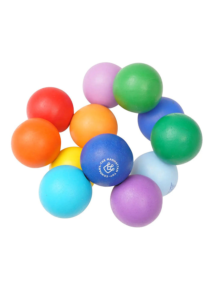 Keep baby stimulated and occupied with Classic Baby Beads from Manhattan Toys. The wood beads are strung together with an elastic cord and can be manipulated into an endless number of configurations making it a great sensory item.