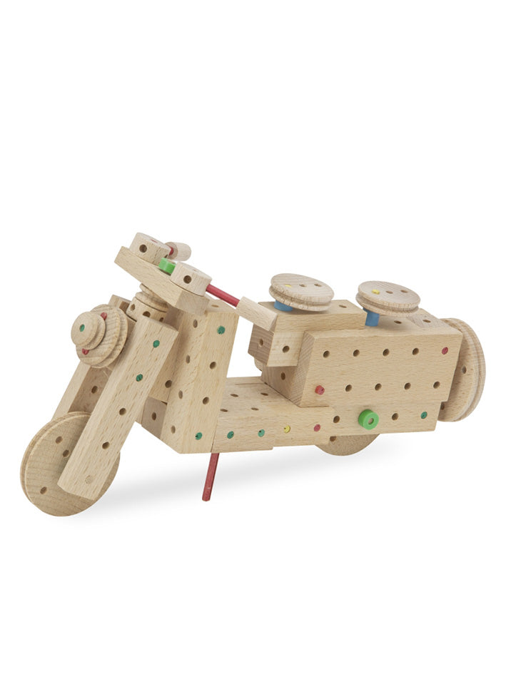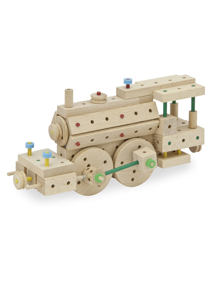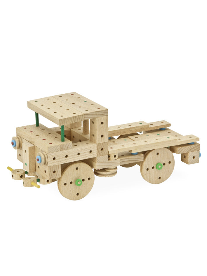The Matador Explorer E318 is from 5 years - stable and durable - 100% Austrian wood, 100% Made in Austria - Building functional models - Build with hammer and pliers - Contents: all parts of the E222 + 96 parts = 318 parts - Included tools: hammer, pliers - Template booklet: Building instructions with 71 building ideas - Size: 383 x 95 x 255 mm - Weight: 1.05 kg
