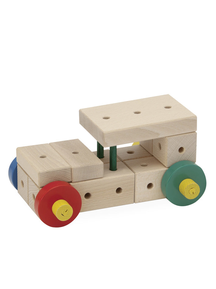 The Matador Maker M108 is from 3 years - stable and durable - 100% Austrian wood, 100% Made in Austria - Build with hammer, pliers and wedge - Contents: all parts of the M70 + 38 parts = 108 parts - Included tools: hammer, pliers, wedge - Template booklet: Building instructions with 55 building ideas - Size: 383 x 95 x 255 mm - Weight: 1.70 kg