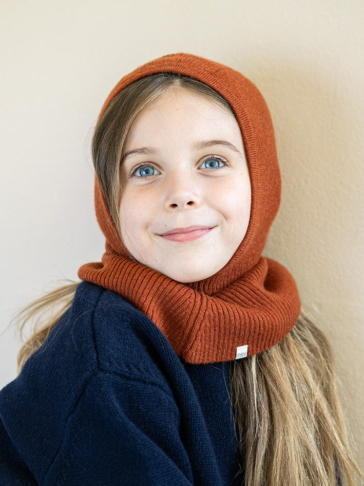The Ilefant Balaclava in Dark Rust by Minimalisma is a winter essential crafted from a premium blend of 90% wool and 10% cashmere Oeko-Tex100 certified yarn, providing both warmth and softness. Designed in a variety of four beautiful colours, this balaclava fits snugly, offering cosy coverage for little ones on chilly days. Perfectly unisex, it’s a versatile piece that keeps kids comfortable and stylish, no matter the weather. Quality: 10% Cashmere, 90% Lambswool