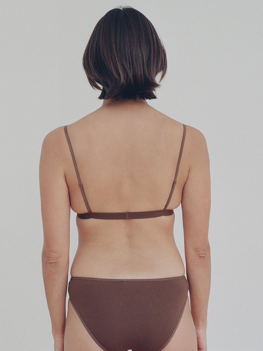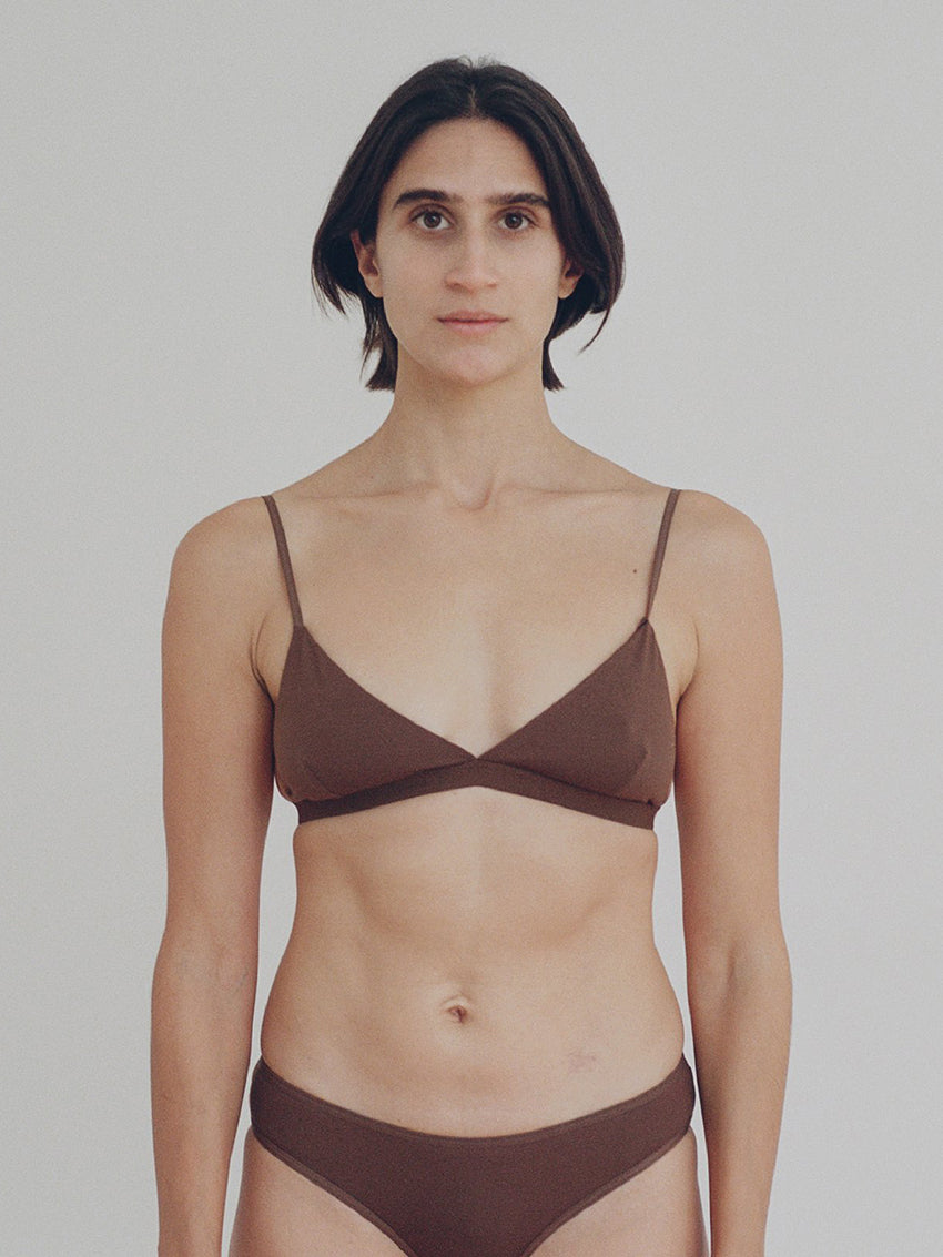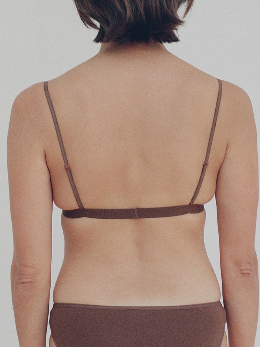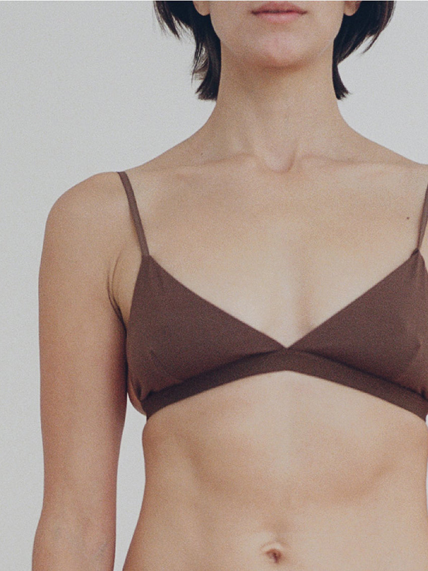 The Mississippi Bra in Ocular from Base Range is a triangular neckline bra with thin and adjustable straps, an elastic band around bust with soft bamboo jersey.