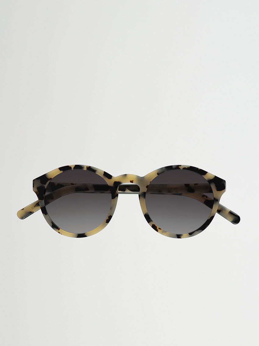 Unisex Barstow Sunglasses in Black / White Havana with Grey Gradient Lens from Stockholm-based brand Monokel. Handmade from organic and biodegradable acetate with stainless steel hinges. Featuring UV-protective, anti-scratch lenses with a gradient effect by German optics manufacturer Carl Zeiss Vision, accompanied with a hard case and cleaning cloth Organic and biodegradable acetate. Stainless steel hinges. Anti-scratch lenses. Carl Zeiss. Hard case and cleaning cloth. Details Made by hand from premium Bio-Based, Biodegradable and Recyclable acetate. 100% UV protective Carl Zeiss Vision CR39 fashion sun lenses. 5-Barrel OBE Stainless steel hinges. Teflon coated hinge screws. Made in China. Frame width: 134mm. Frame height: 50.5mm. Lens width: 47.3mm. Nose width: 23.5 mm. Temple length: 145mm.