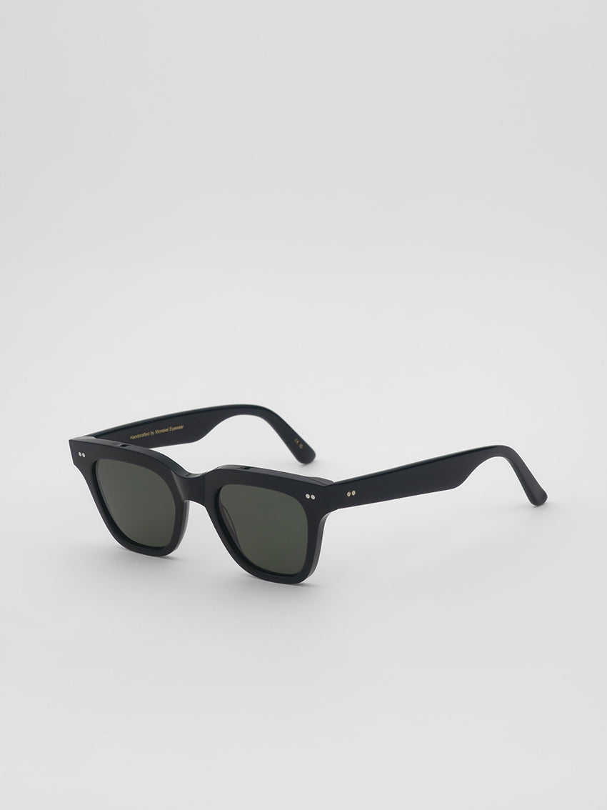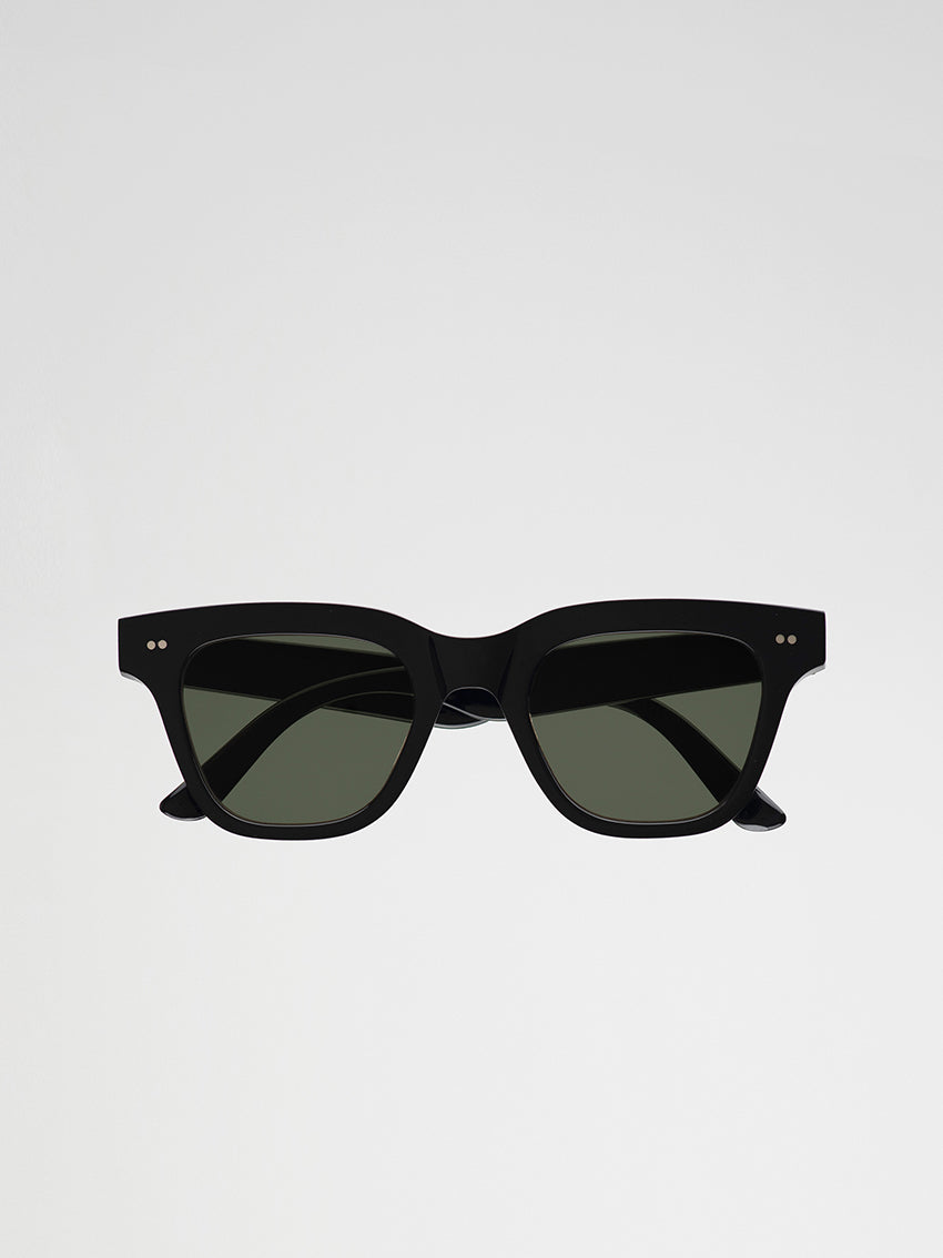 The Monokel Sunglasses in Black with Green Solid Lens are handcrafted with care. The Ellis is designed with larger lenses in a timeless square shape. Ideal for larger faces or those who prefer a slightly oversized style. Handcrafted from organic- and biodegradable acetate 100% UV protective Carl Zeiss Vision CR39 lenses 5-Barrel OBE Stainless steel rivet hinges Teflon covered hinge screws Saddle nose bridge Double horizontal rivets on temples and front Includes protective case, cleaning cloth and box for storage Frame width: 144.5 mm Frame height: 48.7 mm Lens width: 48.5 mm Nose width: 23.5 mm Temple length: 145 mm