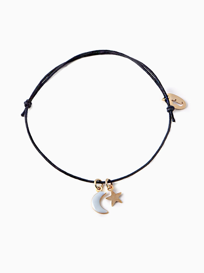 A sweet Moon and its little star: they are so cute and will be just adorable on your wrist! Pendants in gilt brass (24K gold) and colored resin on cotton thread Adjustable Bracelet by Titlee Link length : 11in (suitable for children from 5 to adults). Made in France