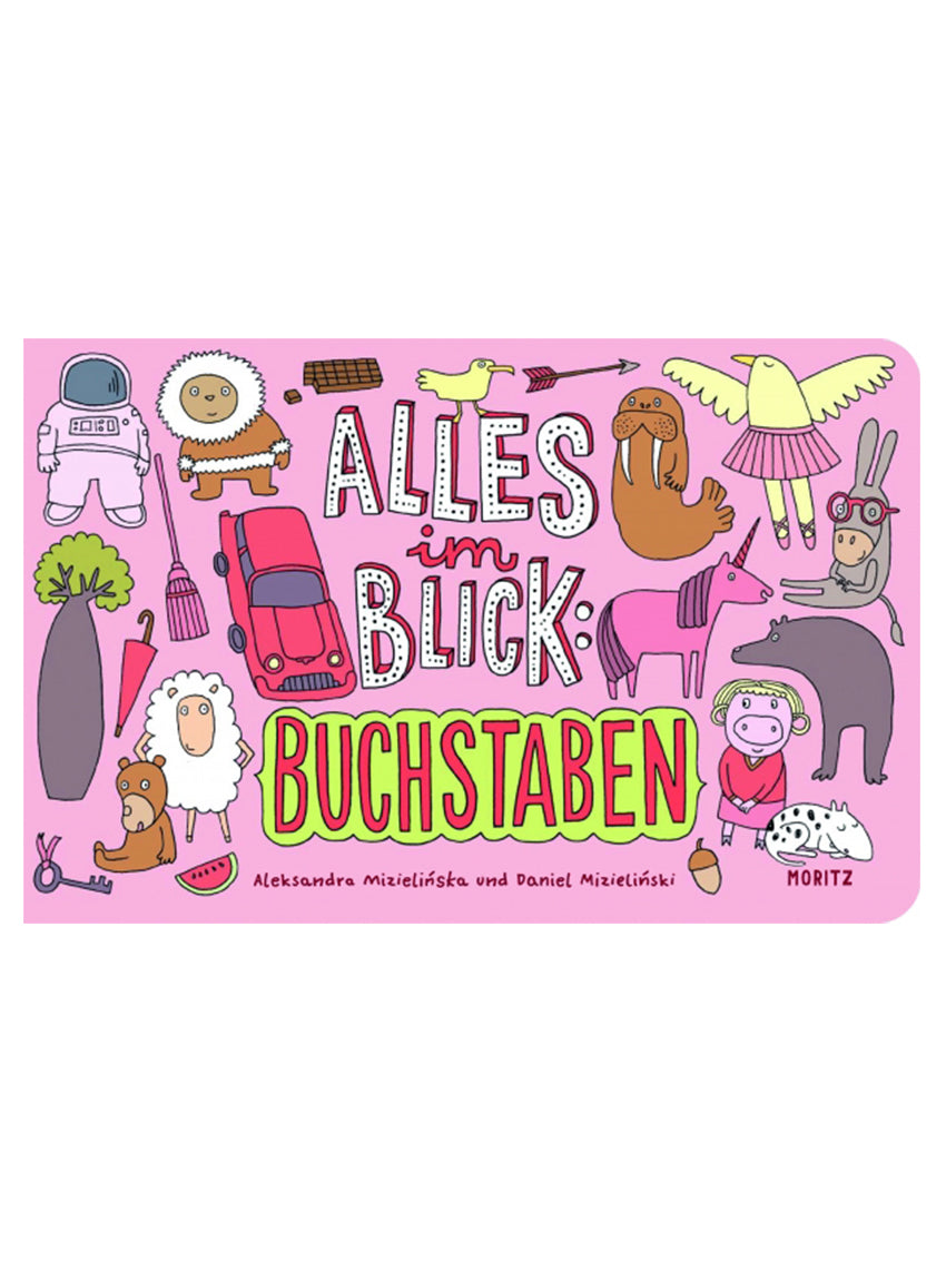Im Buchstabenbuch gilt es, z. B. 18 Begriffe mit »E« oder 28 Begriffe mit »F« zu entdecken. Wer findet Eskimo, Eisscholle und Ente? Wer den Fußballspieler, die Flaschenpost oder den Feuerwehrmann?