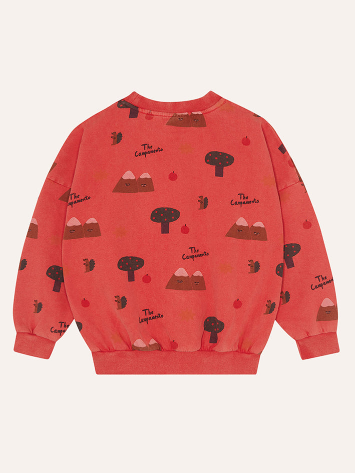 Sweatshirt in Red from The Campamento with a print of Mountain inspired elements.. With oversized fit and rib in cuffs and neck for more comfort. It is a very versatile garment that complete any winter outfit. Long sleeves and oversized fit. Rounded neck in rib quality for more comfort. Fleece 100% cotton. Made in Portugal.