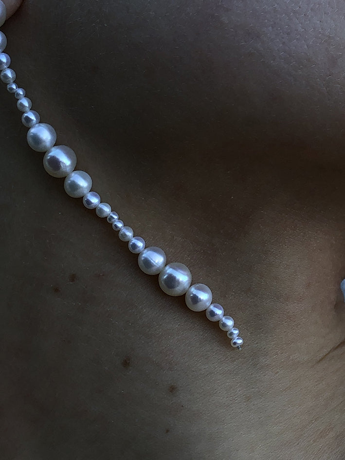 This Pearl Glyzinia Earstud is made of different size freschwater pearls.